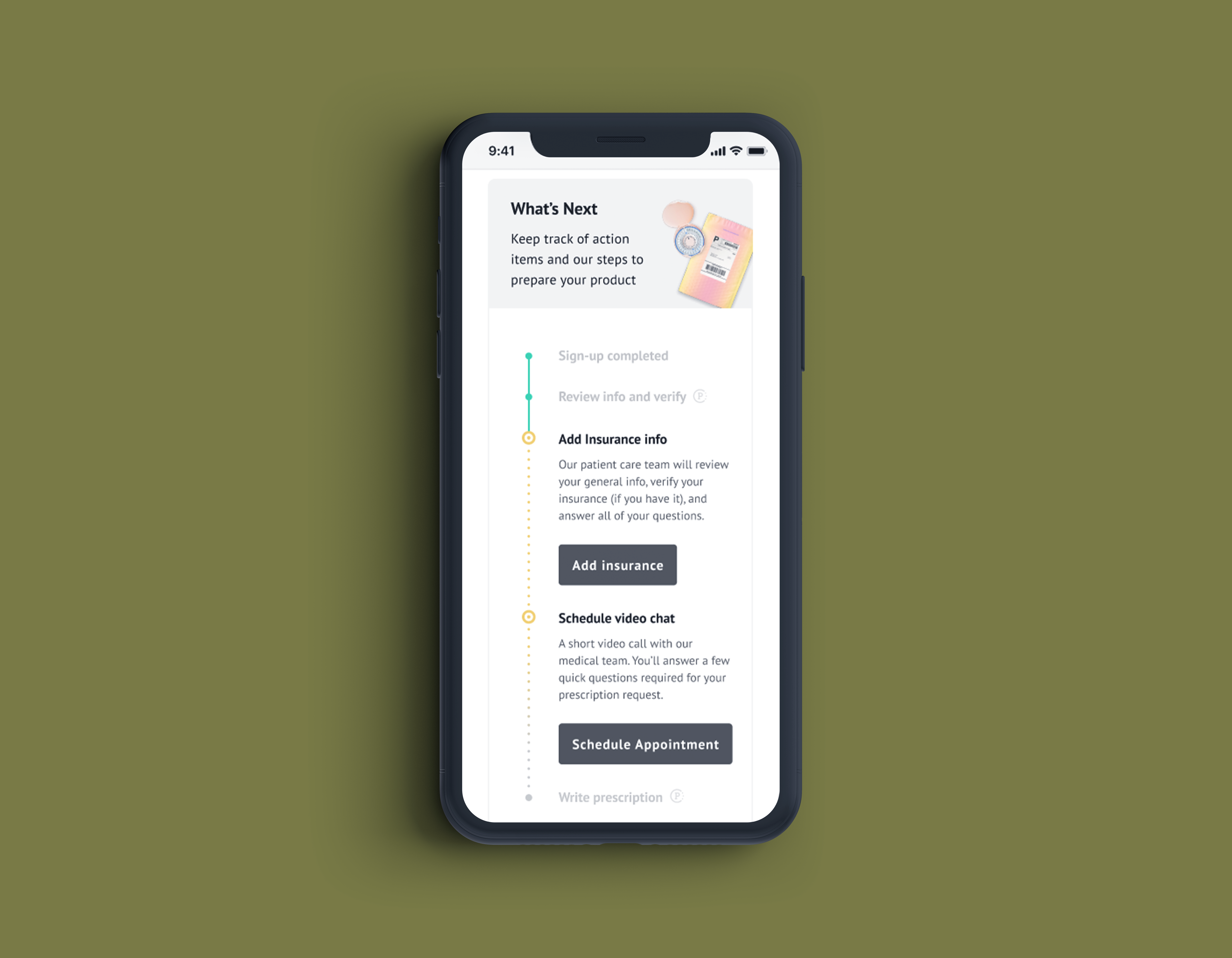 - No visual differentiation between user tasks and what The Pill Club is doing behind the scenes --> both are included in the component